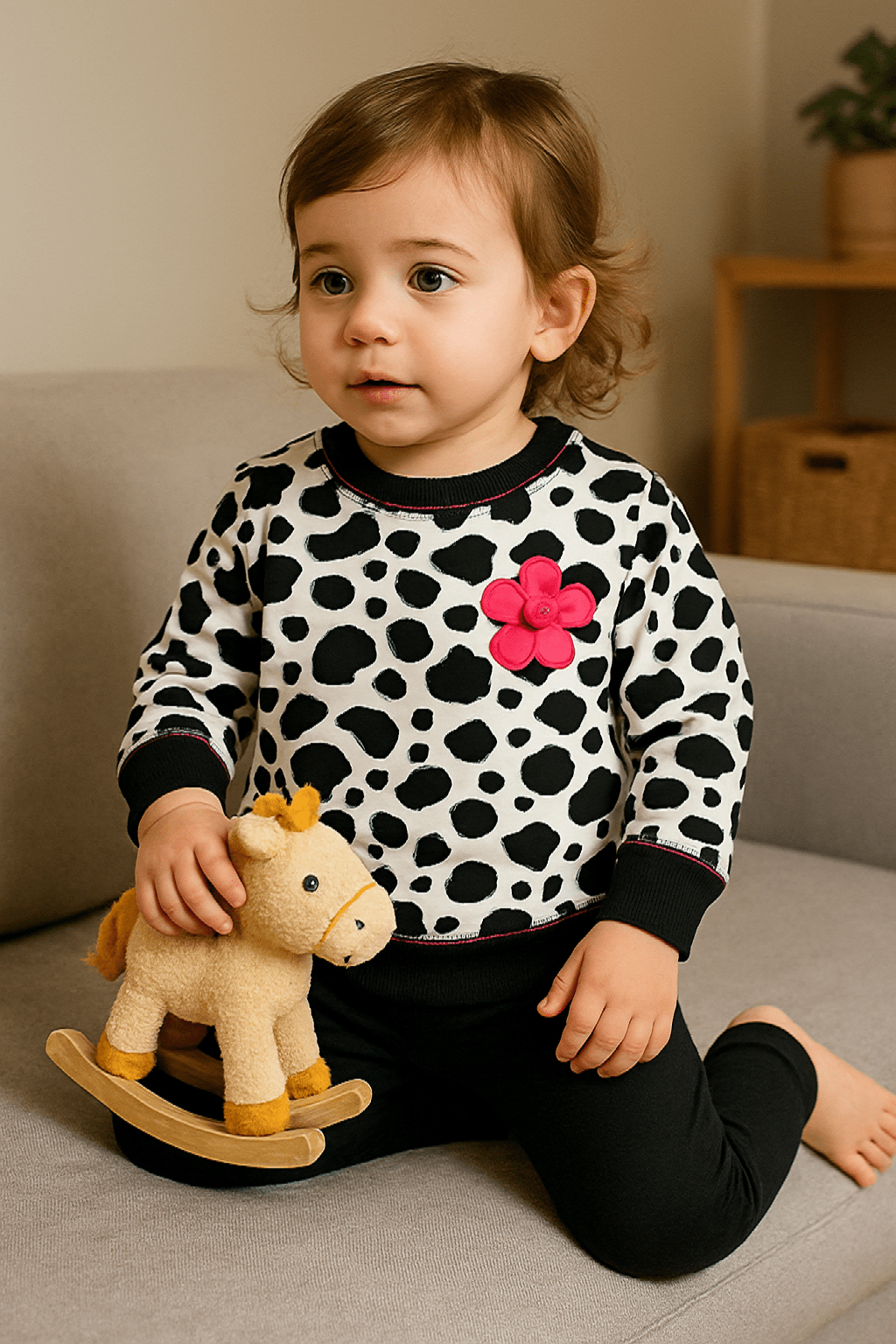 Allover μπλούζα με ψηφιακό τύπωμα & μονόχρωμο κολάν